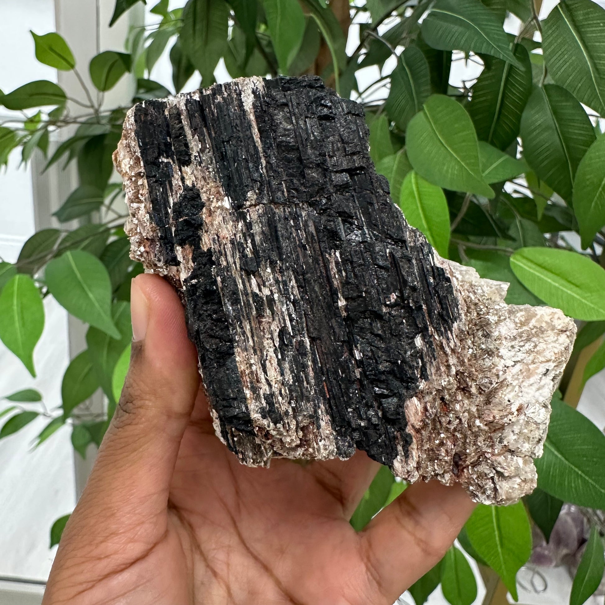 Black Tourmaline in Mica absorbs darker energies and stops them from infiltrating your space, keeping you protected from unwanted vibrations. This crystal offers protection when we feel victimized or if we are in a toxic situation. Black Tourmaline in Mica can be used to transmute any ill wishes sent from others.