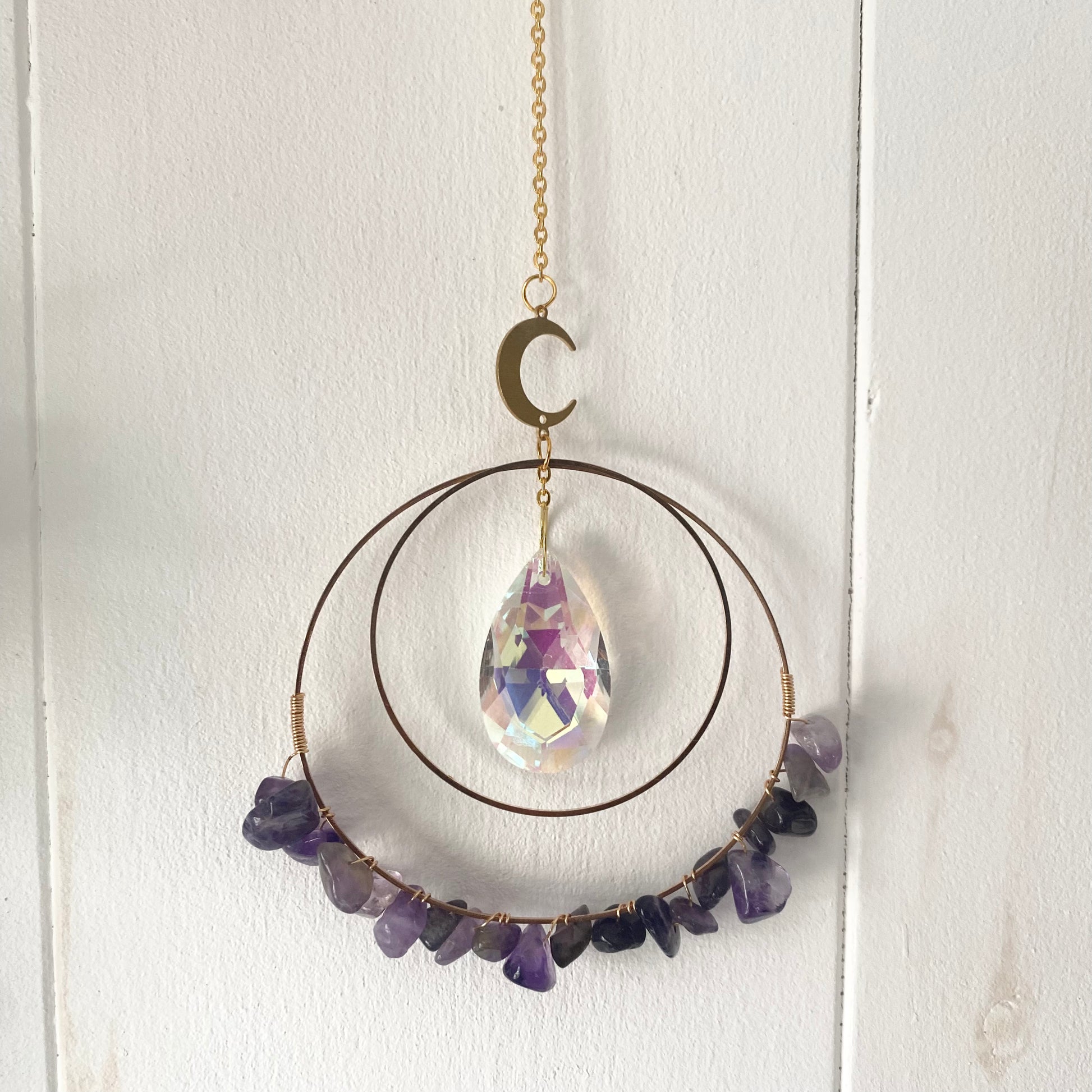 Capture the most beautiful sun rays and rainbow with our stunning sun catchers. Wire wrapped with natural gemstone chips, they can be hung anywhere and will definitely mesmerize you their beauty.