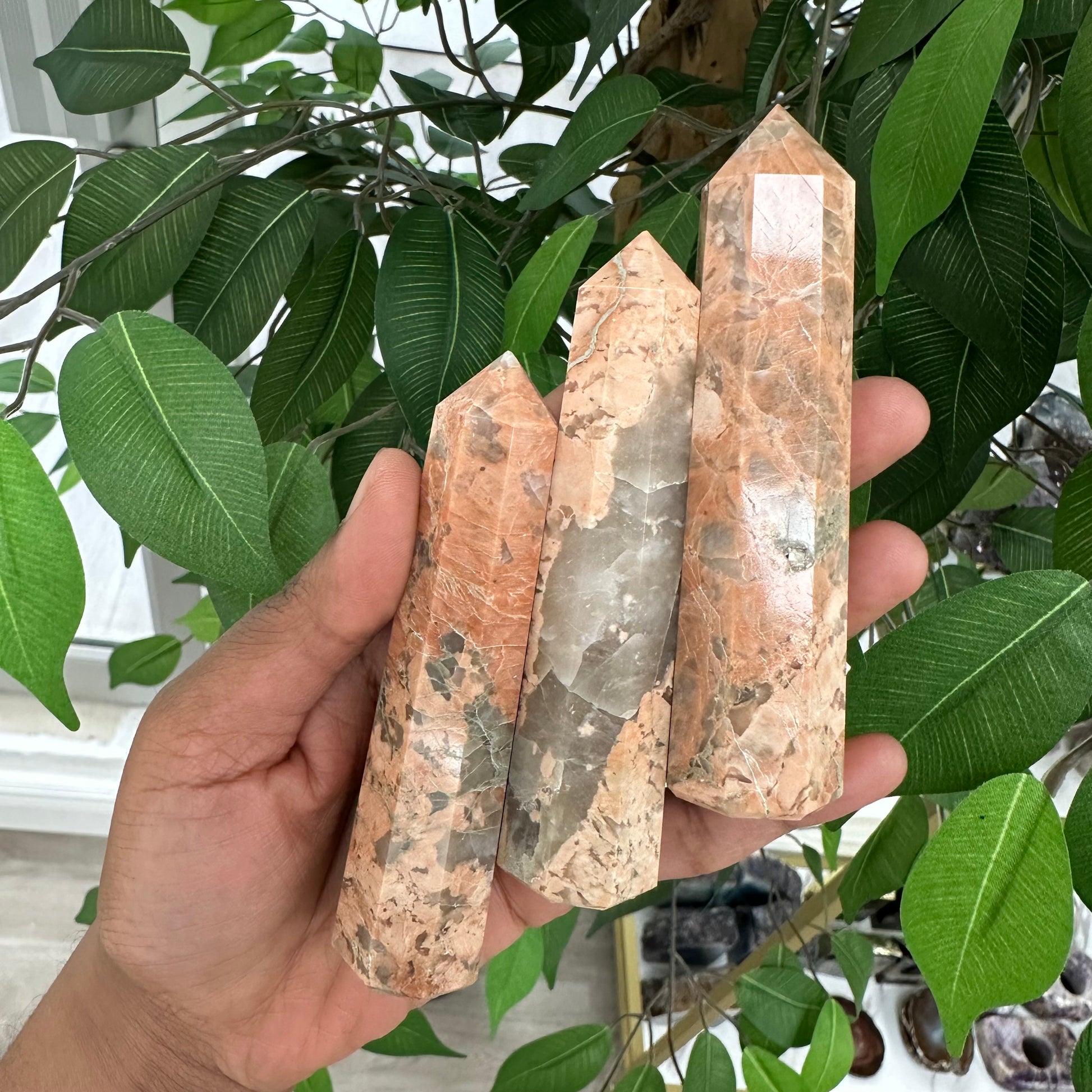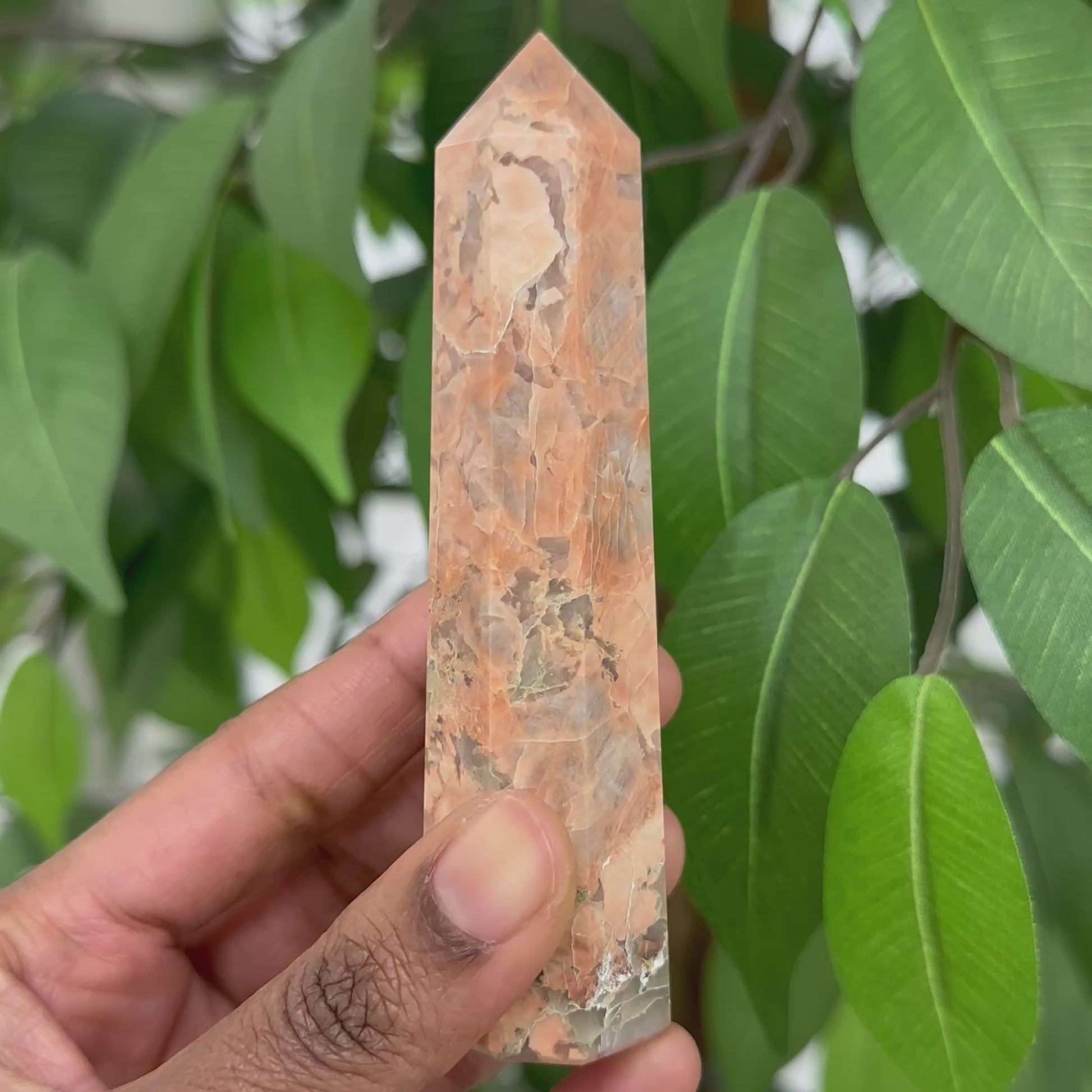 Peach Moonstone is a stone of sudden inspiration and intuitive knowing. It encourages us to be open to serendipity and spontaneity, and to trust that everything is working out according to a higher Divine plan. It calms overreactions and helps us to logically and intuitively explore emotional triggers and other erratic energies.