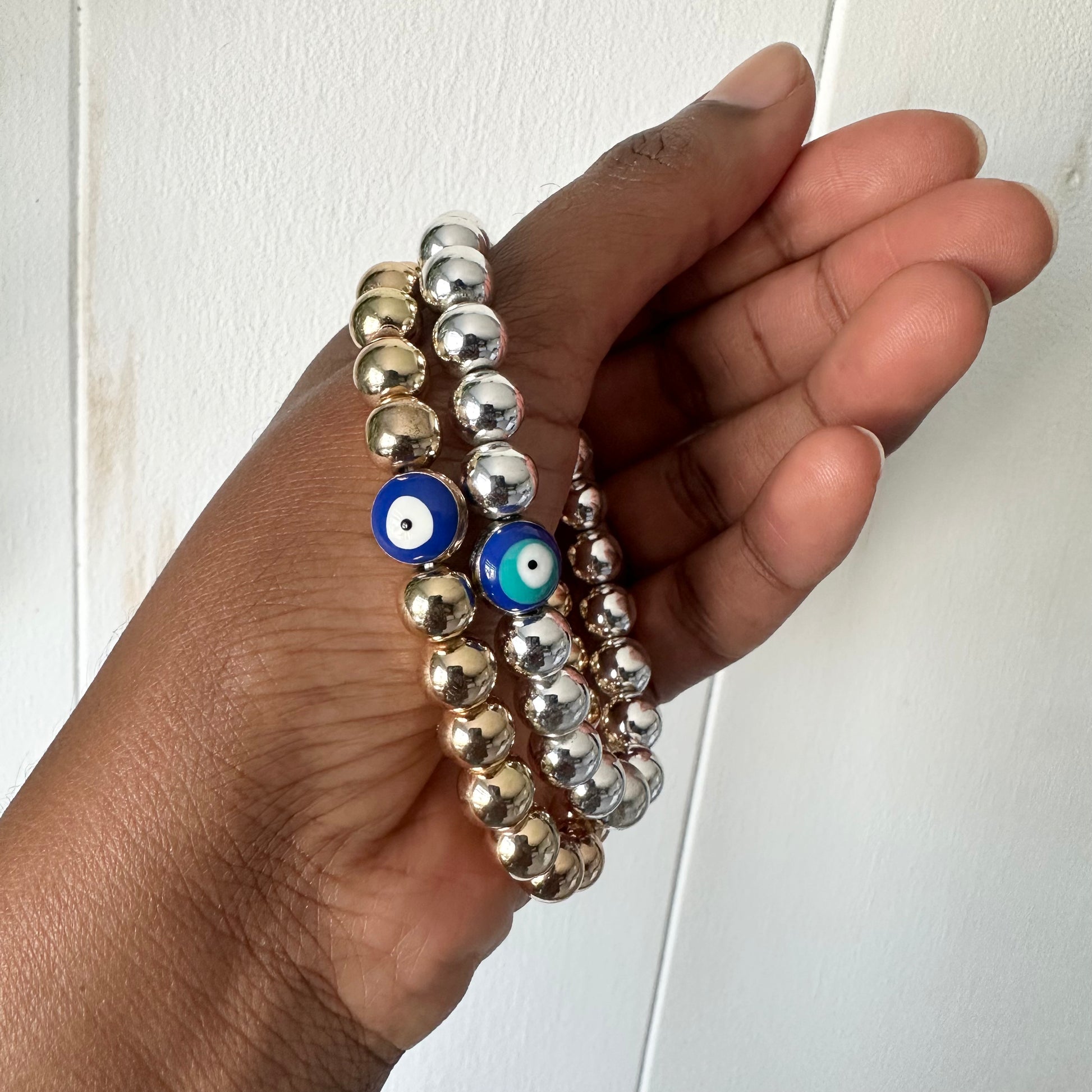 This chic Metallic Evil Eye Bracelet features unique hematite beads with an eye-catching evil eye accent - perfect for adding a touch of style to your look! Wear it and instantly elevate your style. Can you feel the protection that the evil eye brings?