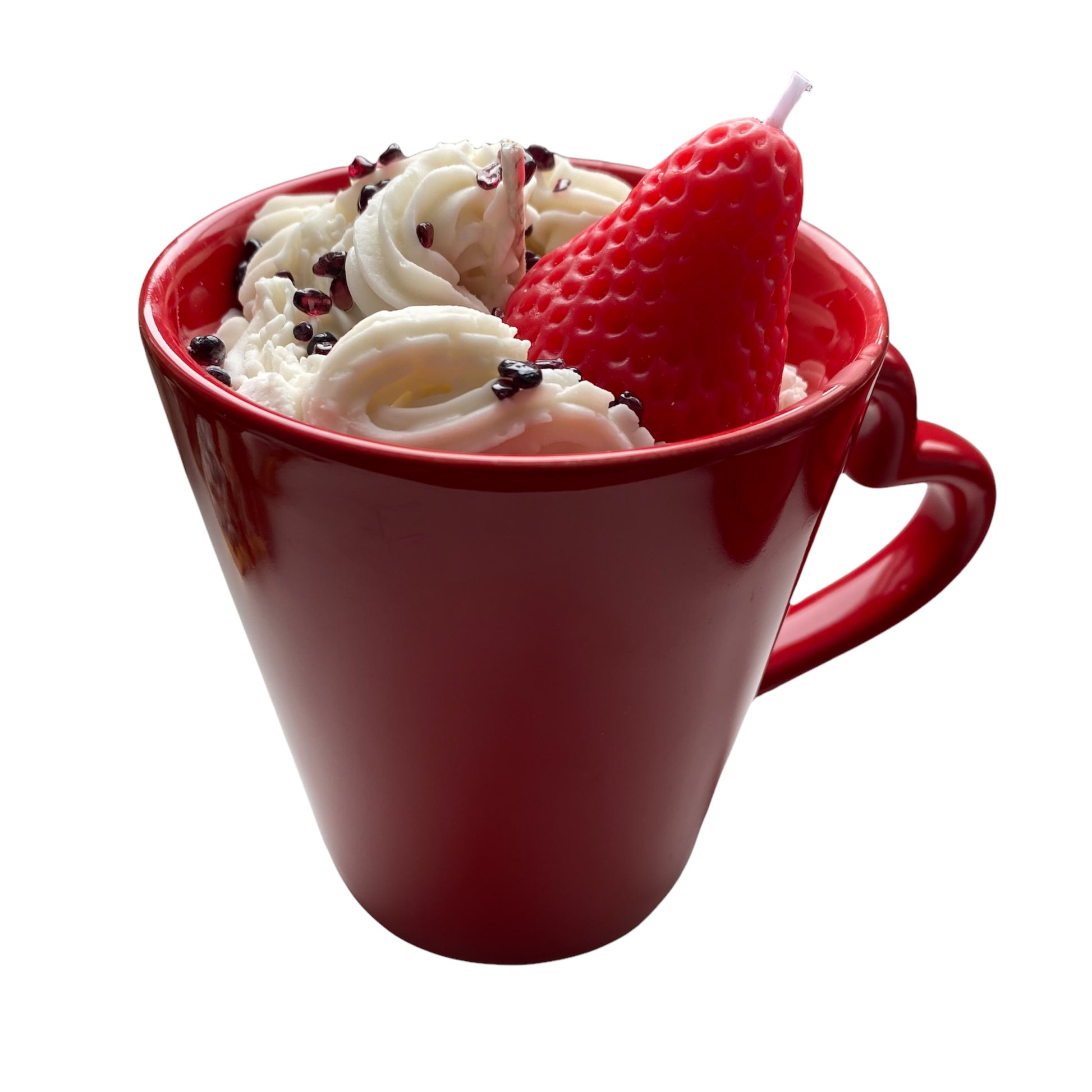 The “Be Mine” candle is double wicked as the strawberry can stand on its own as a tea light candle. It can be removed from the cup or it can stay where it’s placed until the wax has burned out.