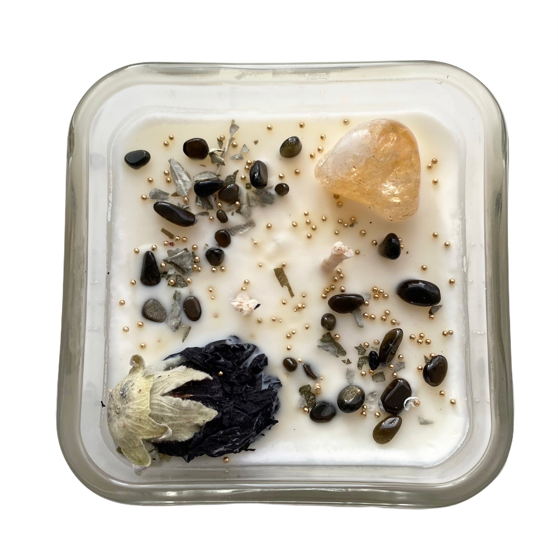 Infused with a Citrine tumbled stone for happiness and wealth, and obsidian chips for focus and protection.