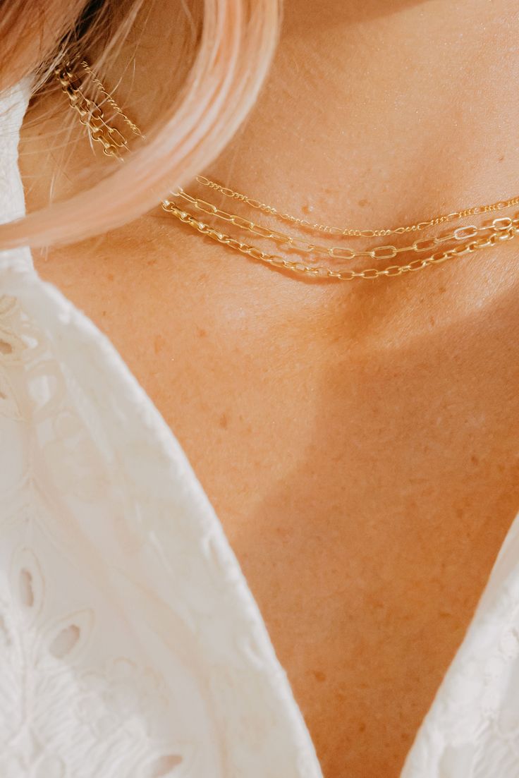We offer multiple fun and stylish chain options in 14k gold filled, sterling silver and rose gold filled. Bracelet prices range from $60-$80, anklets $65-$85 and necklaces $75-$95. Prices depend on the material and type of chain you select.